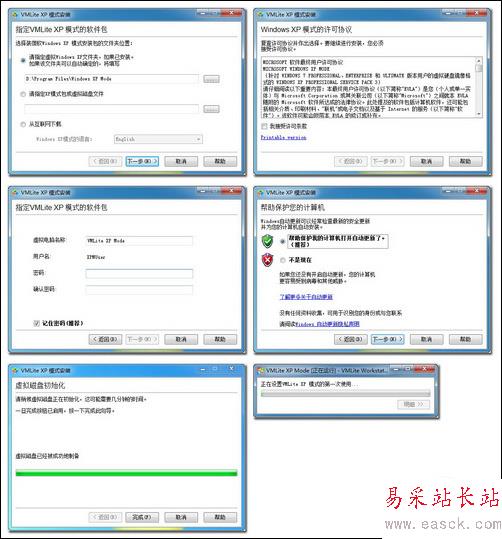 VMLite XP Mode的安裝過程中,與XP Mode一樣,都需要用戶輸入登錄密碼與選擇是否開啟系統自動更新。