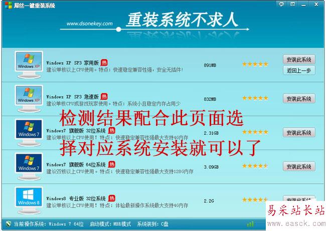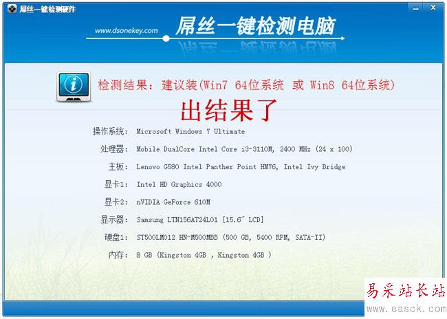 屌絲一鍵檢測電腦出結(jié)果了,請記住要裝什么系統(tǒng)!