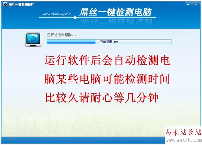運行屌絲一鍵檢測電腦軟件后,會自動掃描電腦配置。稍等幾分鐘,有些電腦可能時間會稍長些,請耐心等待!