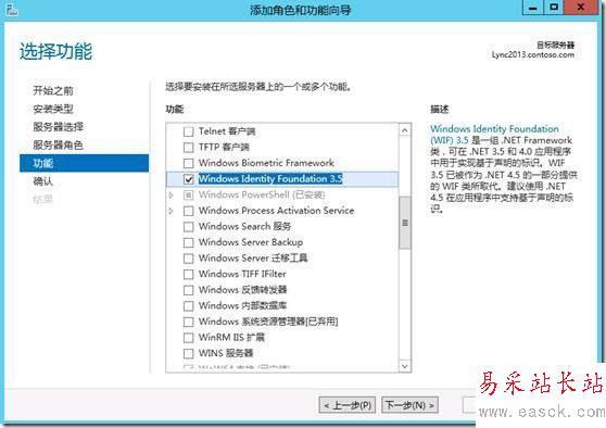 安裝Microsoft .Net Framework 3.5(需要sever2012安裝鏡像并指定文件位置)、Windows Desktop Experience、Message Queuing、Windows Identity Foundation、