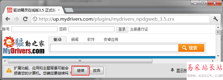 ※chrome下直接按提示點繼續, 或將下載的crx文件拖入到chrome中