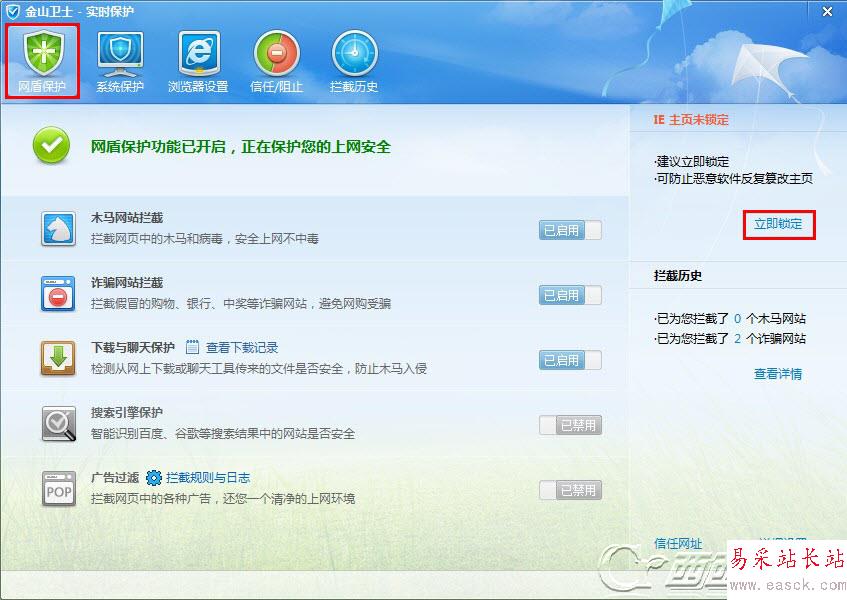 我們經常遇到自己電腦的瀏覽器主頁被惡意篡改,那么怎么鎖定主頁保證安全呢?小編以前分享給大家一些鎖定主頁的技巧。今天小編再教大家怎樣使用金山衛士鎖定主頁,大家試一試,很簡單的喲。