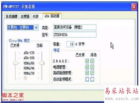 點(diǎn)擊主界面工具欄上的"摘要"按鈕彈出系統(tǒng)總覽界面,如下圖.可以查看CPU,主板,內(nèi)存的詳細(xì)信息,顯示卡,聲卡的芯片組;以及硬盤所支持的DMA模式,當(dāng)前支持的DMA模式等.