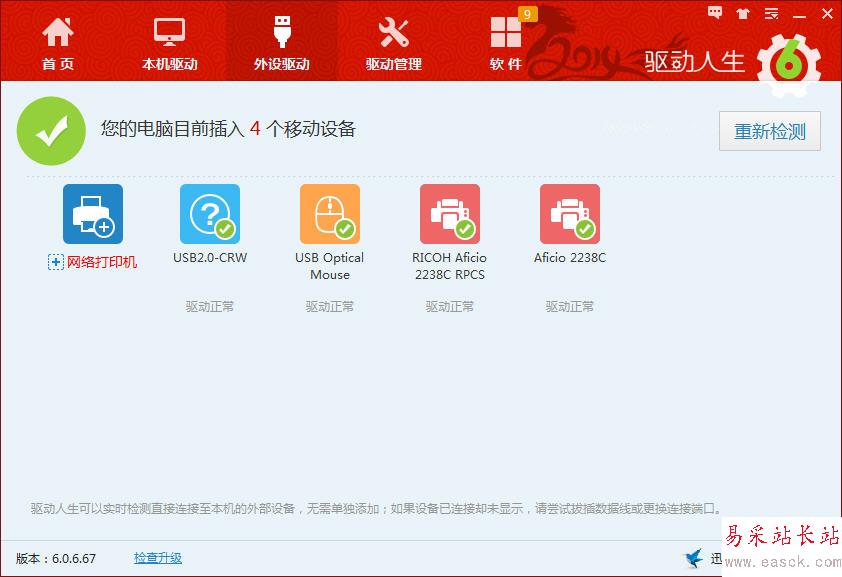 當前插入電腦的移動設備,在驅動人生6的外設驅動里面都會顯示出來,讓您一覽無余。只要您的電腦有接入移動設備,驅動人生都會自動檢測,并且給您的電腦自動匹配外設驅動。因此外設驅動能夠很好的管理電腦接入的移動設備驅動。