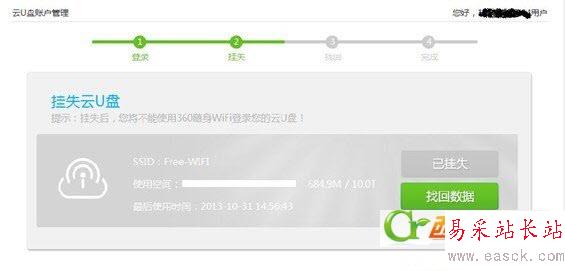 云U盤掛失之后,如果想要找回原來云U盤中的內容,可從360隨身WiFi官網進入點擊【找回數據】,跳轉至新注冊360賬戶頁面,注冊成功后,原云U盤中的內容即被轉移到新的360云盤,從而找回云U盤中存儲的數據。