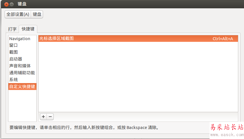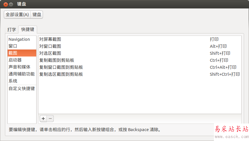 進入系統設置 -- 鍵盤 -- 快捷鍵 -- 截圖 -- 自定義或修改