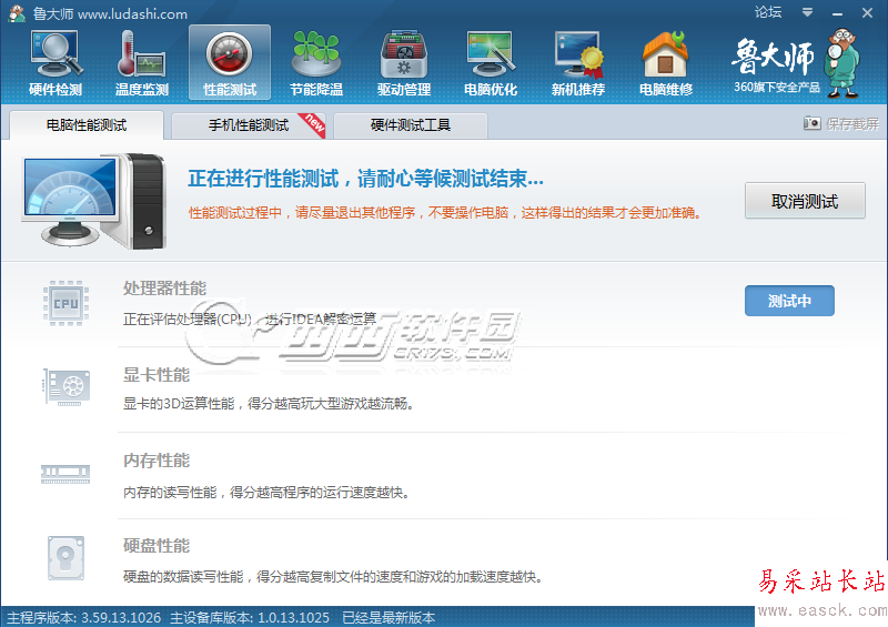 點擊開始測試,測試過程會有點長,測試過程中不要開啟其他程序,以免影響測試結果。