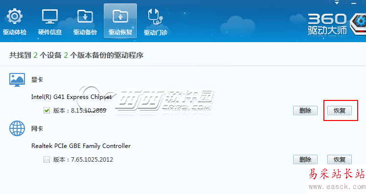 360驅動大師怎么恢復備份驅動: