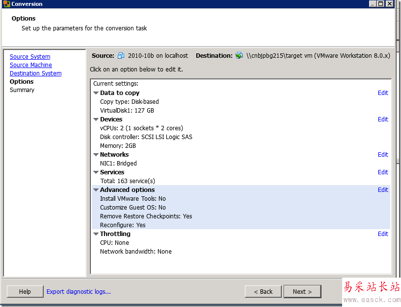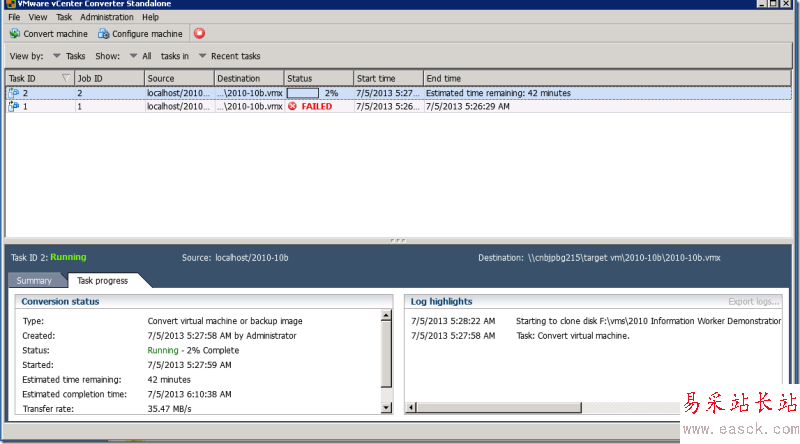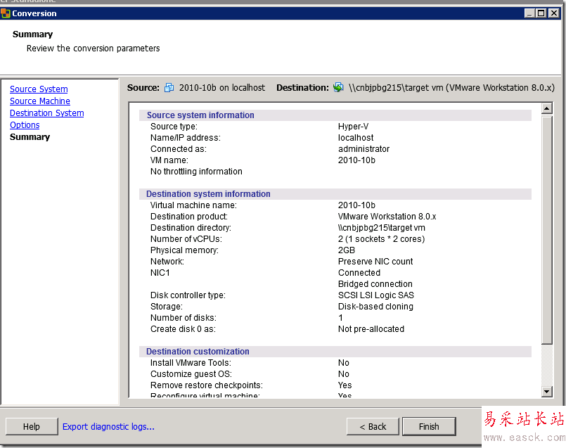 這里講述的是將hyper-v虛擬機轉成vmware虛擬機的辦法,具體步驟如下: