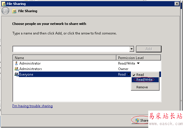 2. 設置一個共享目錄,并給everyone授予讀寫權限