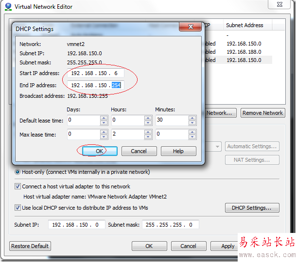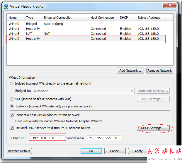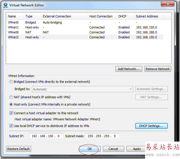 稍后再將虛擬網卡vmnet2的IP設置為:192.168.150.6