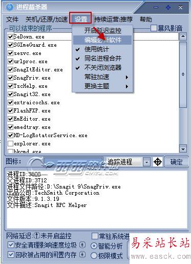 在工作的時候,有一些軟件是必須使用的,你可以編輯必備進程,運行進程截殺器時就不會出現在關閉列表了!