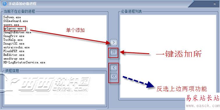 你可以選擇把需要的單個軟件編輯到必備進程,也可以全部添加。