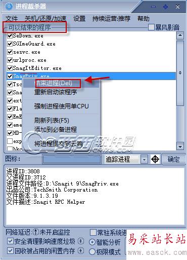 運行進程截殺器后,它會自動獲取電腦上可以結束的進程到列表,我們勾選后右鍵即可選擇結束進程!