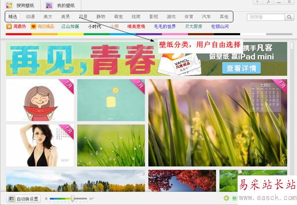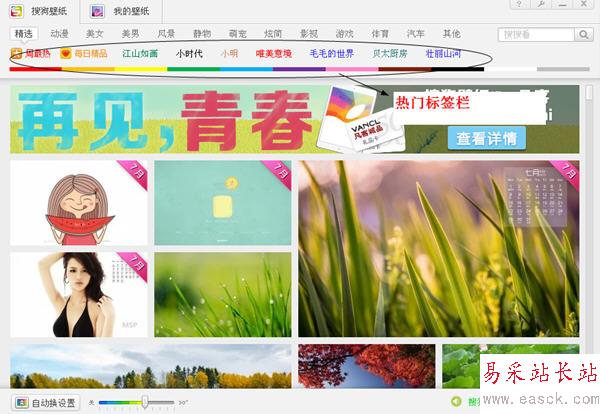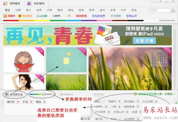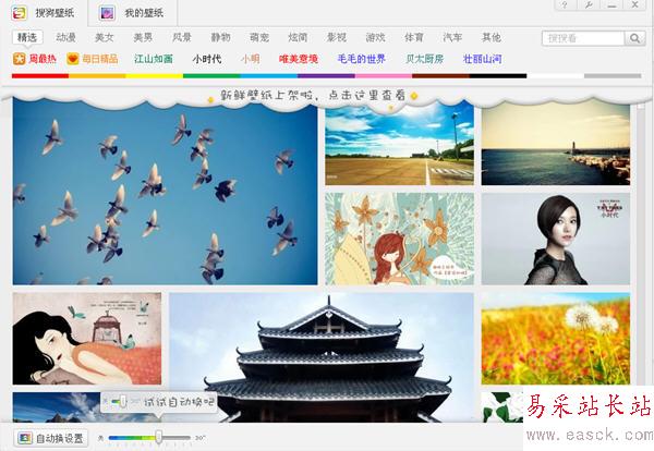 搜狗壁紙還有自動換的功能哦,就是程序左下角!自動換設置