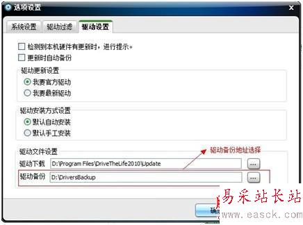 驅動人生為我們選擇最佳的驅動備份目錄,驅動會默認備份到D盤DriversBackup,你可以通過驅動人生上的選擇備份目錄后面的按鈕備份目錄,也可以通過驅動人生的選項設置,設置你認為最佳的驅動備份目錄