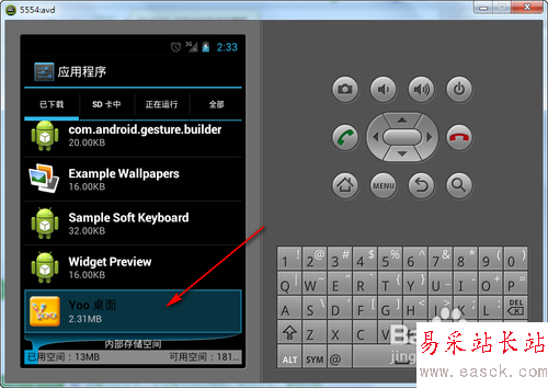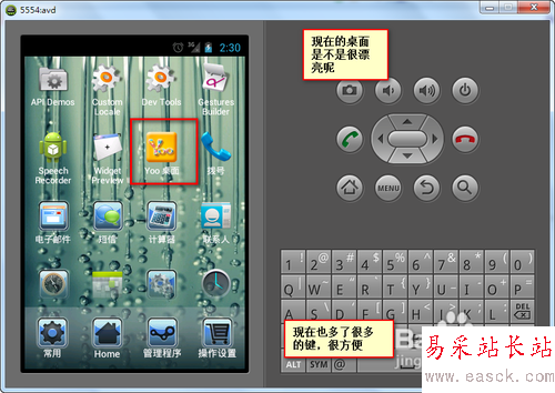 然后回到我們的模擬器上,我們可以看到桌面上多了一個(gè)Yoo桌面的圖標(biāo)