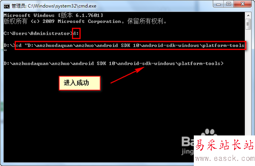 我的SDK安裝在D盤(pán),所以輸入 d: