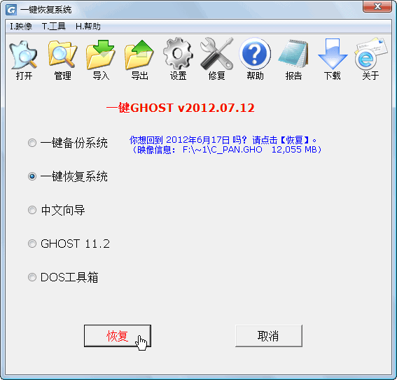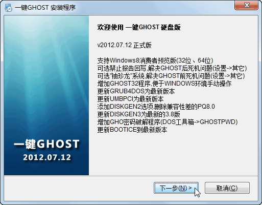 一鍵GHOST還原 v2012.07.12 硬盤版 圖文安裝教程