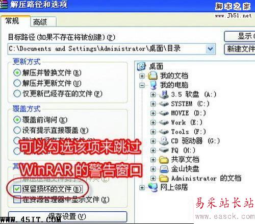 Step 03如果是從網絡上下載下來的壓縮文件,而且該壓縮文件沒有復原記錄的話,只能賭一下運氣了。打開該壓縮文件,點擊“解壓到”,在彈出窗口中勾尋保留損壞的文件”來跳過WinRAR的警告窗口,看能壓出多少檔案,只要毀損的情況不嚴重,能正常使用的幾率也很高。