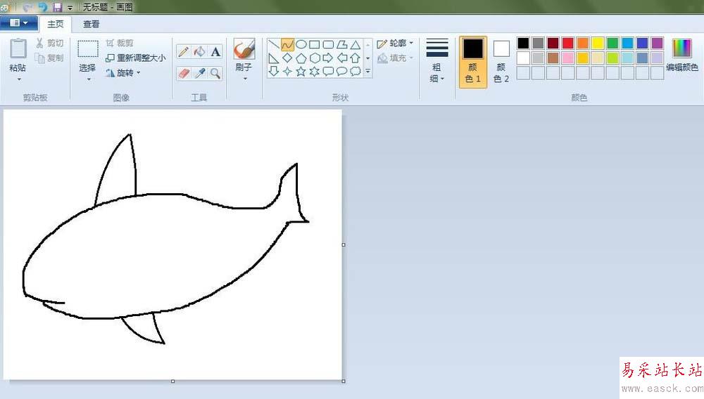 2、身體:點擊“鉛筆”按鈕,線條粗細(第三個),先畫出鯊魚的身體部位。