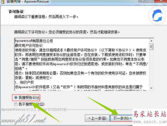 4、閱讀并同意軟件使用協議,點擊“下一步”