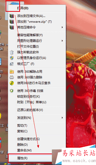 1、右擊vmware虛擬機圖標打開屬性;