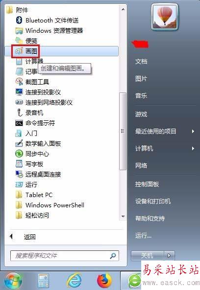 1、在電腦“開始”中找到電腦自帶的畫圖工具。