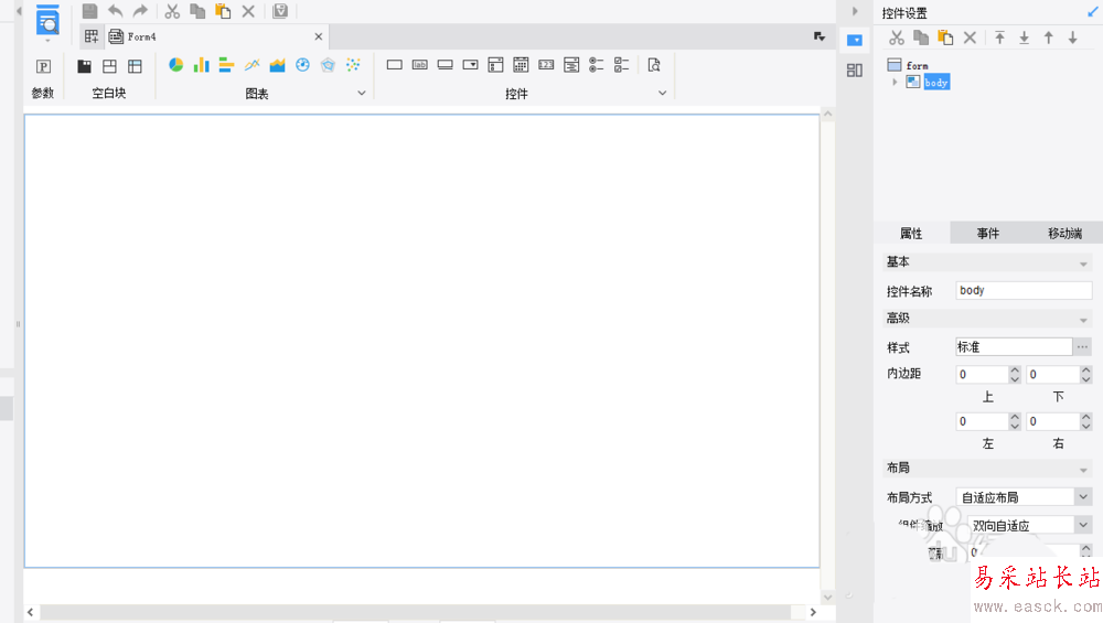 1、打開FineReport設計器,新建空白的決策報表,注意body樣式的設置方法,如下圖所示: