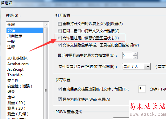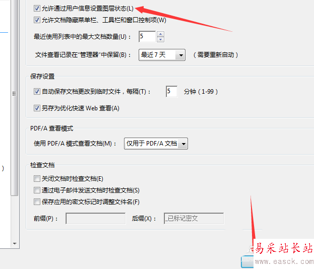 5、進行點擊了文檔的選項之后,進行勾選上允許通過用戶信息設置圖層狀態的選項。