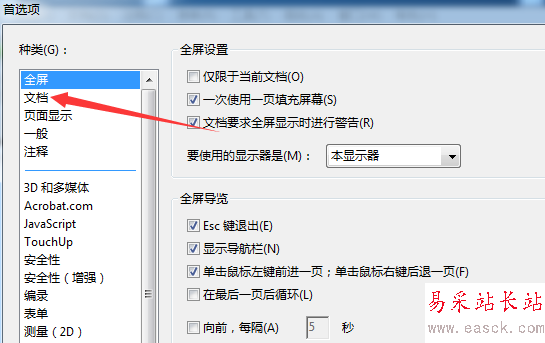 4、進行點擊了的首選項的窗口當中,進行點擊文檔的選項。