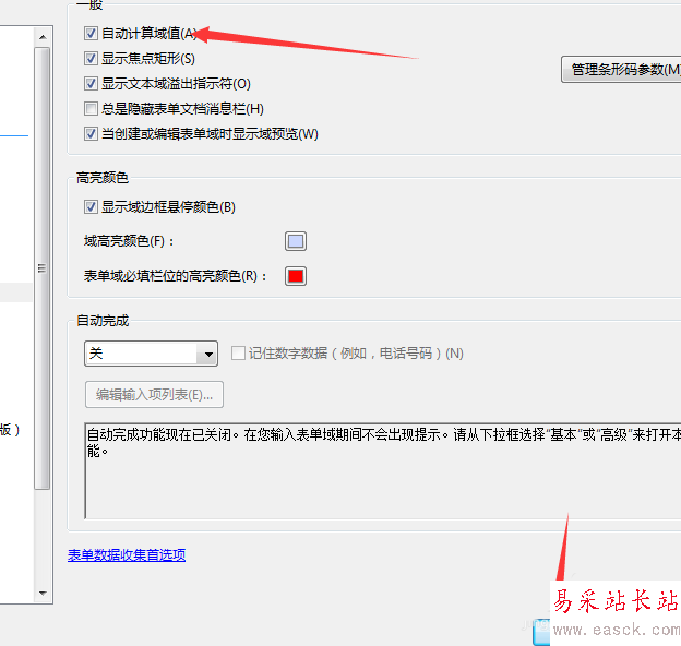 5、選中表單之后,勾選上自動(dòng)計(jì)算域值的選項(xiàng)。