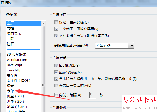 4、就會(huì)彈出了一個(gè)首選項(xiàng)窗口的界面當(dāng)中,選中為表單的選項(xiàng)。