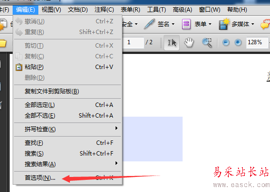 2、進(jìn)行點(diǎn)擊了的AdobeAcrobat 的菜單中的編輯的菜單。