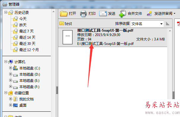 4、選中了打開管理器的選項之后,彈出了管理器 選中一個pdf的文件。