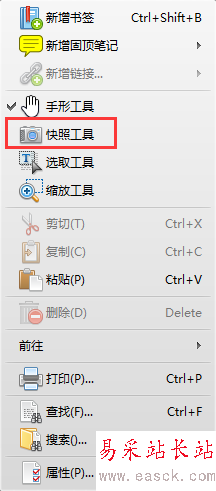4、當(dāng)然,還有中方法是在PDF文件頁面中點擊鼠標(biāo)右鍵,在右鍵菜單中選擇快照工具。