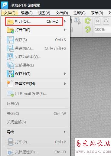 2、有了PDF編輯器后,我們點擊PDF編輯器的菜單欄中的文件菜單,在文件下拉菜單中選擇打開選項,以打開我們想要編輯的PDF文件。
