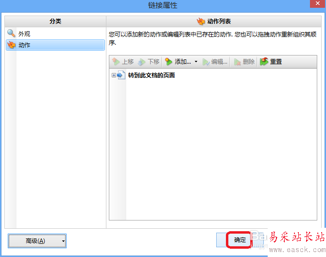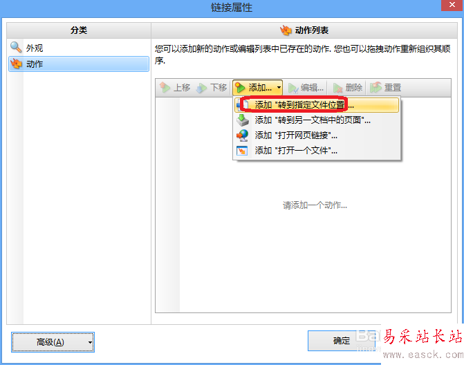 5、彈出連接屬性,點擊選擇跳轉到另一文檔頁面