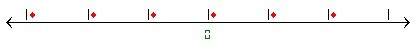 6、選中箭頭上部輸入框中的所有垂直豎線和制表符整體位移直到被平分為2個部分,這樣就將數軸標記成了如下所示的樣子: