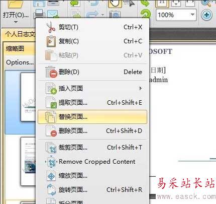 8、從打開的“頁面縮略圖”窗口中,只需要右擊對應的頁面,即可實現對頁面的所有操作,其中包括“刪除頁面”\“插入頁面”等操作。