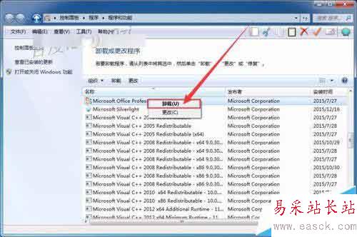 7、嘗試從 控制面板/程序/程序和功能 對Office2010 進行卸載,結果也告失敗