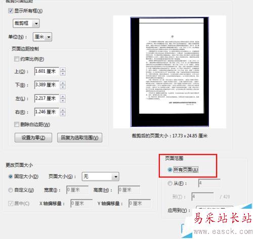 7、在彈出的頁面中,勾選所有頁面,這樣所有頁面的黑邊就可以一次性去掉了