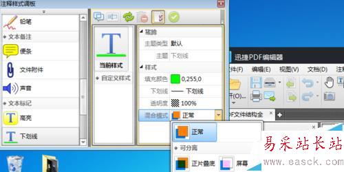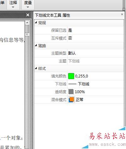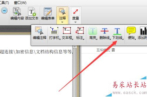 4、當然了,我們還可以通過對工具欄中下劃線工具點擊鼠標右鍵,出現的右鍵菜單中點擊注釋樣式調板中對下劃線樣式等的設定。