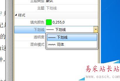 6、如上圖的直線型下劃線。我們還可以在下劃線文本工具屬性中對下劃線的樣子進行設定的。目前只有兩種樣子進行選擇。