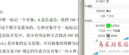 3、再然后我們在頁面右側的下劃線文本工具屬性中對下劃線的樣式等內容進行設置,主要是顏色和透明度等的設定。