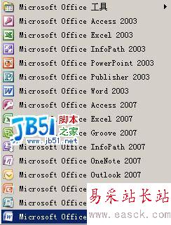 安裝完成后,我們可以在程序菜單中看到office2003和office2007。(圖3)