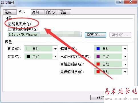 3、網(wǎng)頁屬性窗口中,插入一張背景圖片。