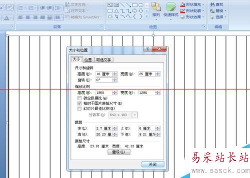 4、按“截屏”鍵后打開Office PowerPoint 2007,在新建幻燈片中將截圖粘貼。通過剪切把格子圖剪好。之后設置圖片大小。高為16厘米,寬為25厘米。之后將圖片90度旋轉后另存至電腦中,記好路徑。