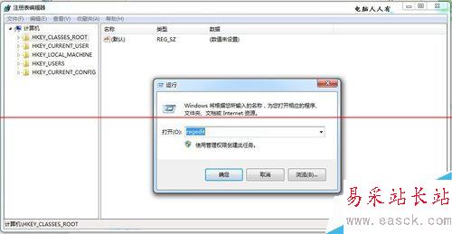 2、先在【開始】→【運行】中輸入: regedit 按回車鍵之后,打開注冊表編輯器。