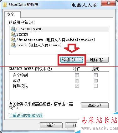 10、以同樣的方法添加Everyone(每個人)賬戶授權。